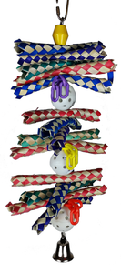 Happy Beaks Finger Stack by A&E is an excellent toy that encourages your bird's natural instinct to forage and play with its' colorful and fun design. It will keep your pet entertained as well as giving it the exercise it needs. This will keep your bird alert, happy, and healthy. Toys offer birds to play which help foster better mental health and independence. The finger stack is crafted of natural palm and plastic. It includes all of your bird's favorites; paper finger traps, plastic rings, wiffle balls and a ringing bell.