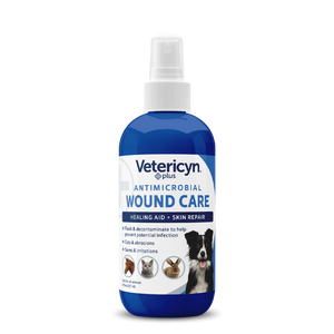 Jumpstart the healing process with Vetericyn Plus® Wound & Skin Care liquid. Our all-natural wound care product helps to remove dirt and impurities and cleanse your animal’s wounds, setting the stage for optimum healing conditions. Use it to clean, debride, irrigate, and moisturize wounds. In addition, it is an excellent choice for moistening wound dressings. Vetericyn Plus® Wound & Skin Care liquid utilizes advanced hypochlorous technology to provide a powerful, non-toxic alternative to antibiotics and steroids. Safe for use on all animals around the mouth, nose, ears, and eyes. For optimal healing, first clean the wound with Vetericyn Plus® Wound & Skin Care and then protect and moisturize the wound with Vetericyn Plus® Antimicrobial Hydrogel.